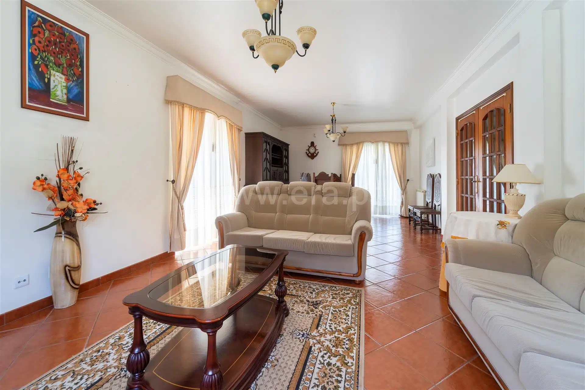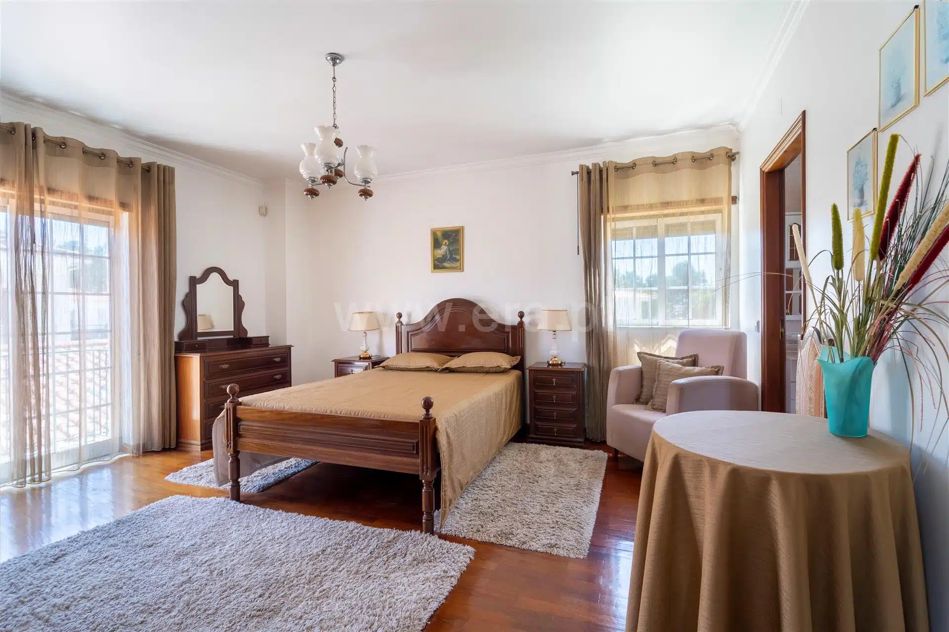 Fully equipped kitchen, living room with fireplace, suite, balconies, central heating, alarm installed.
